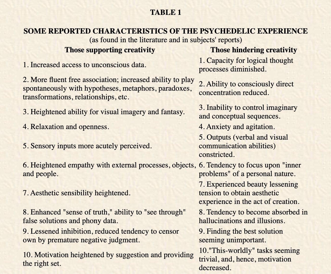 Of course mastery over the medium of thought is only acquired through years of practice, tuning, and critical feedback. Consider how the sophistication of one’s thinking evolves over time; compare how a third grader thinks relative to a graduate student. There is no reason to expect this mastery over our sober medium of thought will translate into competence over exotic patterns of thought! When you take LSD for the first time and experience “LSD-like thinking patterns” you are like a newborn, faced with a completely new and exotic mode of self-reflective expression. No wonder “LSD thoughts”, when put into sober words, have a tendency of sounding like gibberish! But that is not to say that the medium of LSD-like thought patterns is doomed to be irrational, insane, or helplessly disconnected from reality. Far from it, as attested by the numerous anecdotes concerning genuine (and later verifiable) problem solving breakthroughs enabled by the psychedelic state (see: Harman’s and Fadiman’s research on psychedelic problem solving).