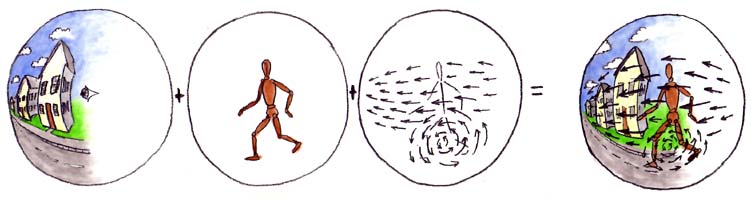 “Motor computation takes the form of spatial field-like forces in that space, that bend the body-image homunculus into different postures.” Reprinted with permission from “Cartoon Epistemology” by Steven Lehar, p. 51F.