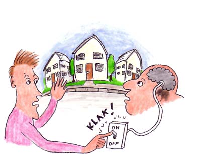 Of course it exists! Otherwise there would be nothing to keep the picture in your bubble synchronized with the picture in mine. Can’t you see? We are both looking at this same house from different perspectives, so there must be a real house there to be the common cause of both perspectives. We are each seeing our own virtual-reality replica of the real world, each from our own unique perspective.